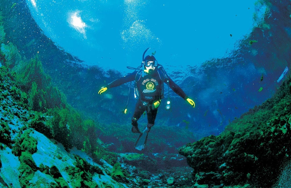 It was with great relief that we finally slid into the chilling 11.7°C waters of Main Spring in the 130-metre-wide pond called Pupu. Main Spring, a natural aquarium of various aquatic plants and weeds, is just under seven metres deep and not much wider across. Only four divers are permitted in the water at one time, and even that is a crowd.