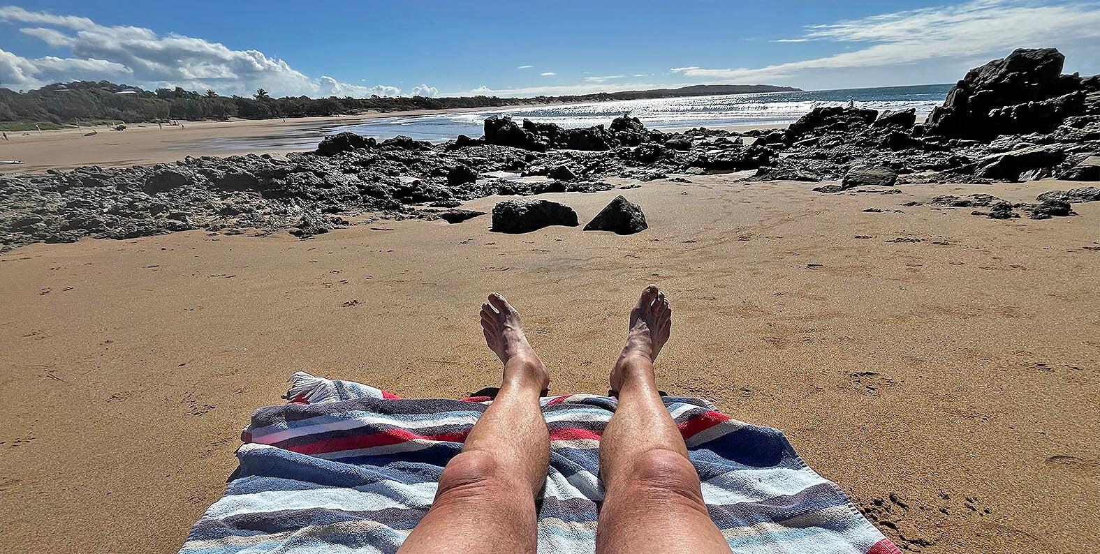 After eight days in isolation in my friends self-contained unit, Mark and I finally get to hang out with our morning coffee at our favourite place overlooking the beach at Agnes Water.