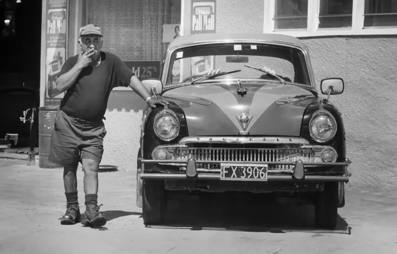 Across the road at the Tokomaru Bay dairy another East Coastie is equally proud of his 1950s model EIP Vauxhall. His name was Buster and he was a little bit shy but proud to pose with his well maintained set of wheels.