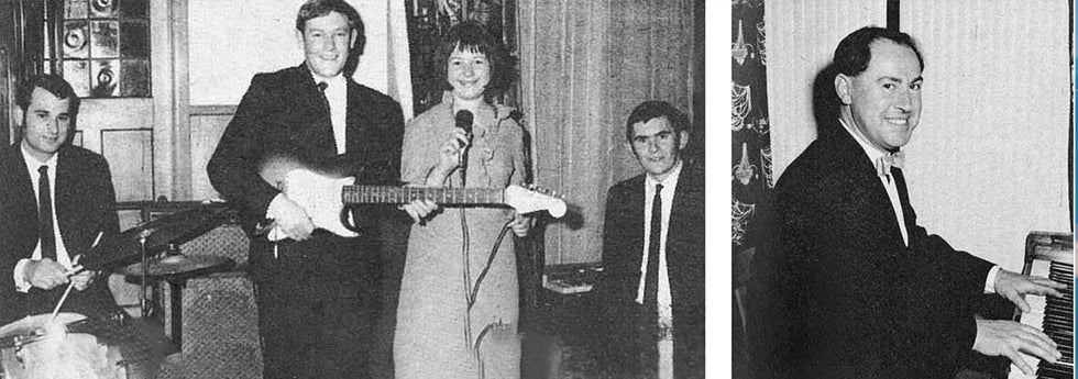 The Graham Bell Combo was a popular dance band in the 1960s. Jim Nicklin on drums, Graham Bell on guitar, Bobby Bell the singer and Noel Bell on the organ. Right: Popular local pianist Lionel Neil kept the customers dancing.